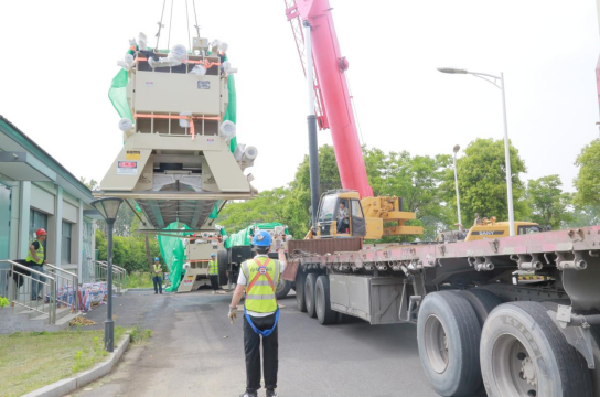 5月7日,江濱水廠三期工程尾水處理項目迎來重大突破——3臺單體重達42噸的板框脫水機在狹小施工場地內(nèi)成功完成高精度吊裝,標志著項目正式進入設備安裝沖刺階段。