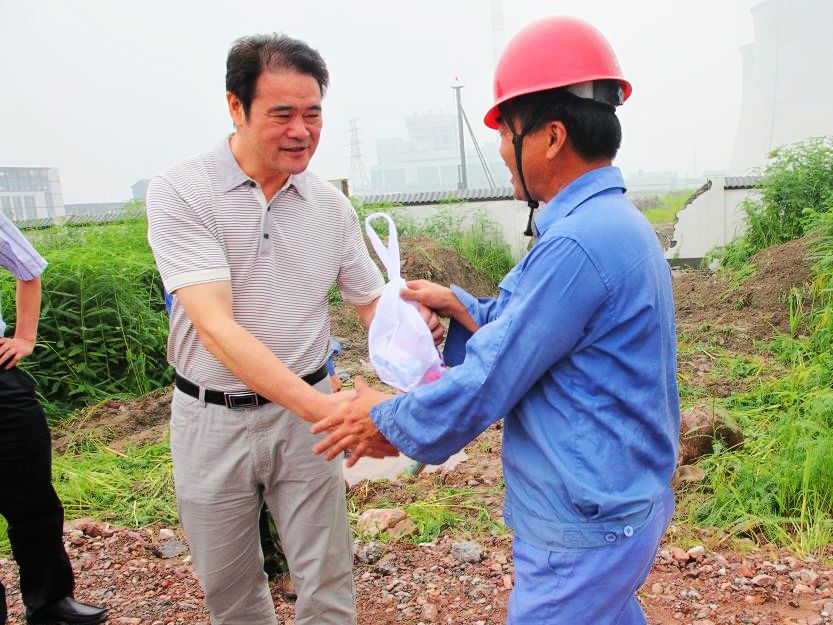 圖為集團(tuán)單總經(jīng)理慰問紹興水處理公司機(jī)修員工