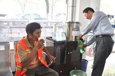 為進一步樹立公司良好的社會服務(wù)形象,紹興縣供水有限公司積極響應(yīng)浙江之聲廣播電臺的倡議,從8月6日起,在柯橋城區(qū)、福全鎮(zhèn)、安昌鎮(zhèn)、錢清鎮(zhèn)等16個供水營業(yè)大廳開展“一杯水”大型公益活動,為戶外高溫工作者免費提供飲用水和短暫休憩場所。